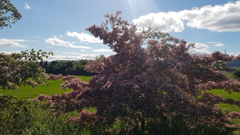 Sunday looked a bit damp from the bedroom window, but we wanted a walk, and we wanted to be in the hills, so with beginners’ minds, not choked with assumptions about walks in bad weather not being enjoyable, we set off to Little Glenshee, to walk the Obney hills to the Obelisk on Craig Gibbon that overlooks Glen Garr. As we neared the ford, we realised we were not going to get any fantastic views from the Highland Boundary Fault over the flatlands of lowland Perthshire. The cloud base, already low, was decidedly sinking like a lead balloon. I wondered where Wordsworth was actually wandering when he spoke about “a cloud that floats on high”. It is not in the nature of any self-respecting cloud to float. Sink, envelop, infiltrate, surround, creep into you…. Not float. Anyway, we donned the waterproofs and walked.