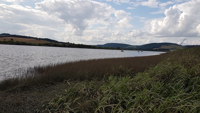 Just the mist weaving between the rushes and the ripples.