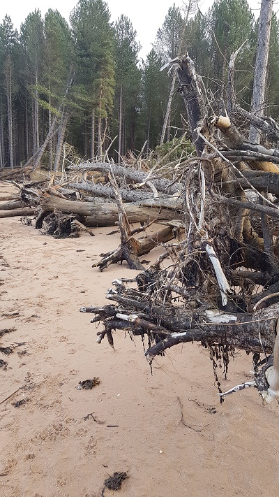 The Obelisk itself, looming like an ancient pyramid from the foggy tangles of tree and heath, was a wonderful thing that day. Its history is rather pedestrian – just an expression of a 19th century landowner’s ego who wanted everyone to see how far his land stretched. But the cloud slithered into its window-spaces; ferns flourished on the wet grey stone. Tiny frogs hopped among the slippery, exposed pine roots, and there were wild blaeberries for lunch.
