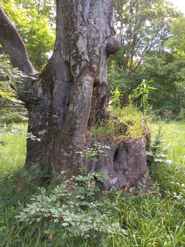 It was the East Wemyss caves that had been bothering me ever since reading that Val McDermid novel; not just to imagine fictional murders, but to see where Picts had carved strange images in bygone centuries, where people had dwelt, sheltered, hidden, picnicked and stored precious things. But first, when I passed through the woods, I came upon Macduff’s Castle – an impressive ruin whose stonework exhibited all the artistry of a carving, it is so tastefully eroded. All around its roofless vaults grew great clumps of Alexanders, a shiny-leafed, celery-like edible plant not native to these parts, but where it takes off, it does so with enthusiasm. I circumnavigated the castle before heading down the cliff to the caves.